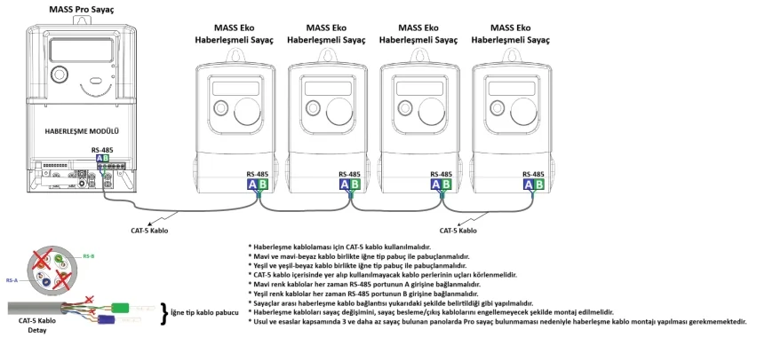 PRO tip akıllı sayaçların üretim süreçlerinde yaşanan zorluklar ve mevcut piyasa koşulları dikkate alınarak, 01.03.2026 tarihinden itibaren uygulanmak üzere aşağıdaki düzenleme yapılmıştır. MASS onaylı PRO tip akıllı sayaç tesis edilmesi gereken işlerde, söz konusu sayaçların temin edilememesi halinde mevcut piyasa koşulları oluşuncaya kadar; ilgili sayaç yerine MASS onaylı, RS-485 (haberleşmeli) portuna sahip EKO tip akıllı sayaç da tesisat muayene aşamasında kabul edilecektir. Not : Aşağıda detayları bulunan süreç değişikliğine ilişkin bilgilendirme mailiyle farklı bir değişiklik bulunmamaktadır. 01.03.2026 tarihi itibariyle; dağıtım şirketine sunulan iç tesisat projelerinde ölçü sistemlerinin MASS onaylı sayaç olarak çizilmesi haberleşme kablolarının proje içeriğinde yer alması(PRO sayaçlı olacak şekilde), hizmet alım yönetimiyle ilgili elektrikçi tarafından tesis edilen sayaçların tesisat muayenesinde aşağıda detayları yer aldığı şekilde MASS onaylı sayaç tesis edilmesi ve haberleşme kablolarının tesis edilmesi talep edilecektir. Bilgilerinize sunar, gereğini rica ederiz. Mail Dağıtım şirketlerimiz Yeni Bağlantı Takım Yöneticiliğinden gönderilmiştir. Anadolu Yakası Elektrik Dağıtım A.Ş. Başkent Elektrik Dağıtım A.Ş. Toroslar Elektrik Dağıtım A.Ş.